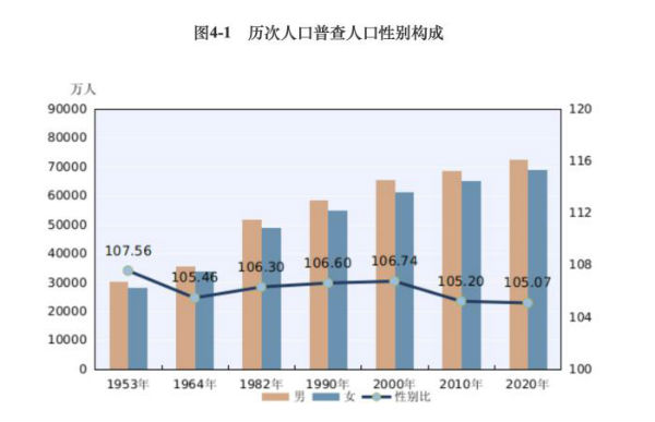 中国的人口诞生性别比为 107.2;1990年、2000年第四次、第五次全国人口普查数据分手为116.9 和118.6。在2007年《中国统计年鉴》中。