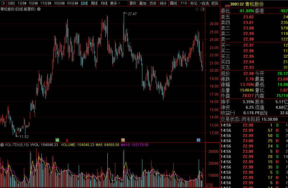 奥园美谷、朗姿股份这些是游资主导的票。而机构主导的票青松股份本日大年夜涨13.76%。
