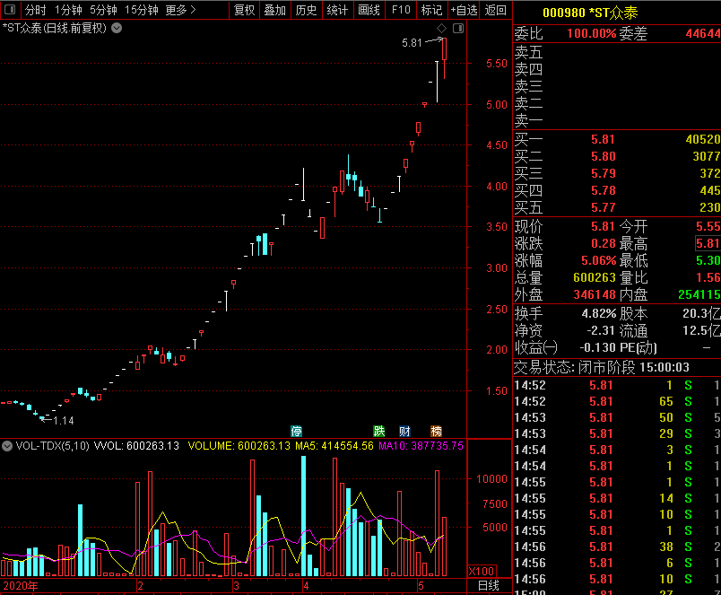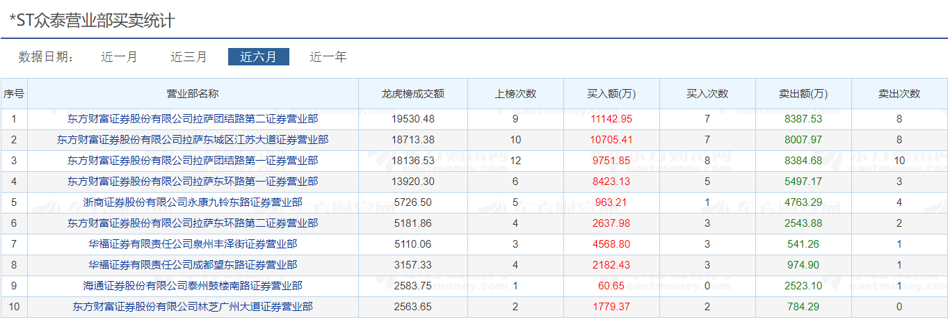 近来10个买卖营业日都是涨停。从*st众泰近6个月的业务部生意统计来看。