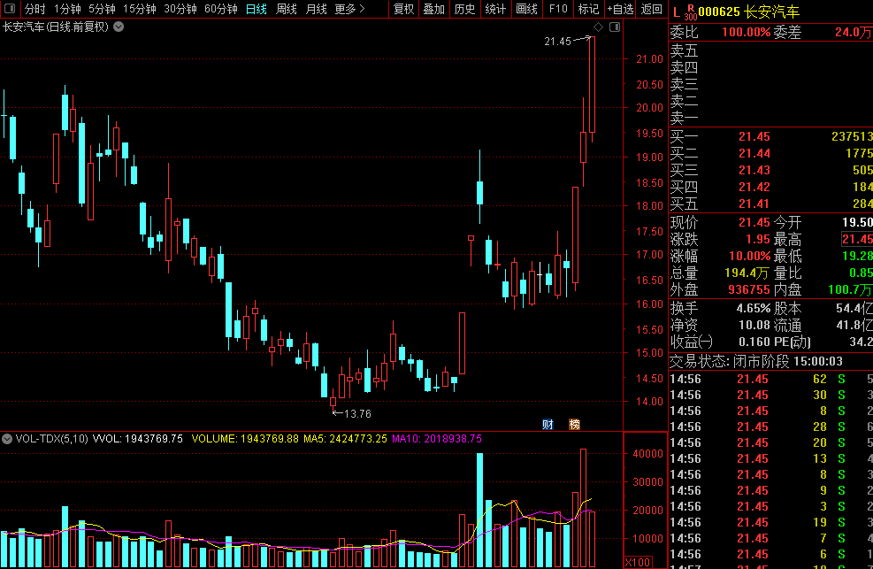 徐晓所在的席位暴力买入5035万。别的今日长安汽车强势封板。