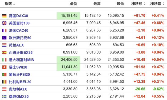 (欧洲主要股指走势