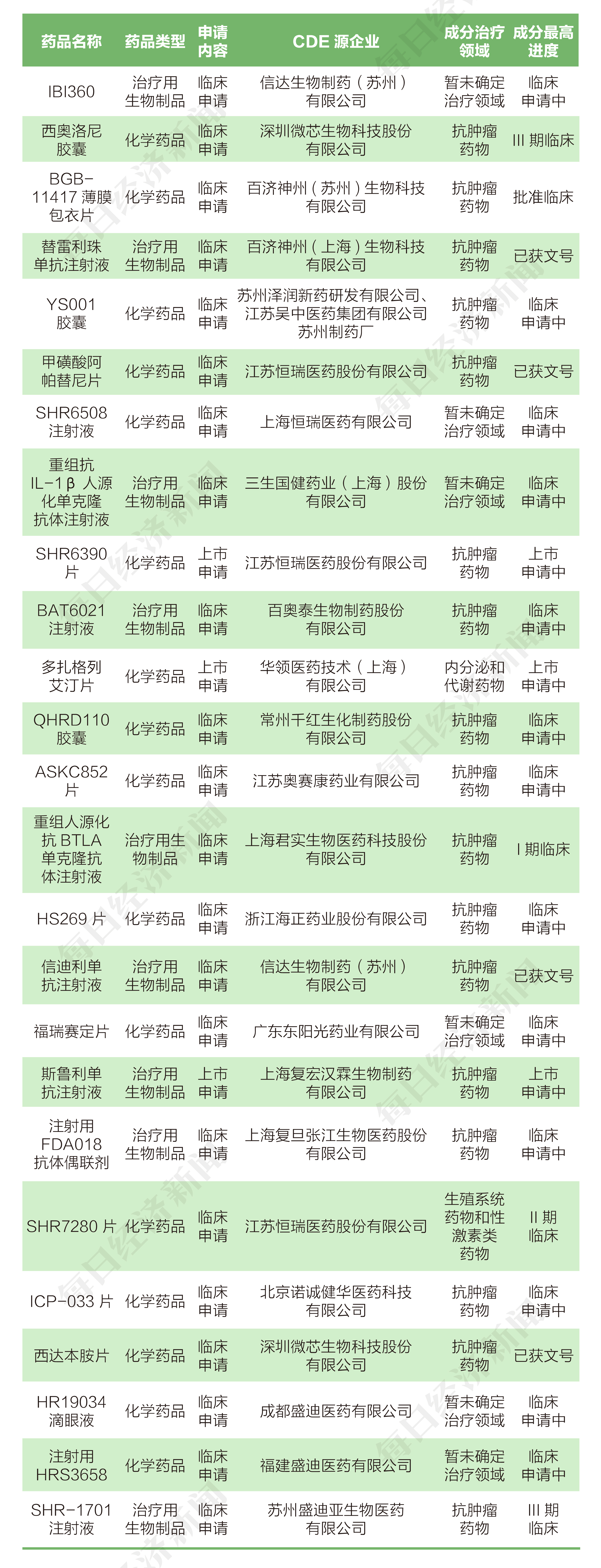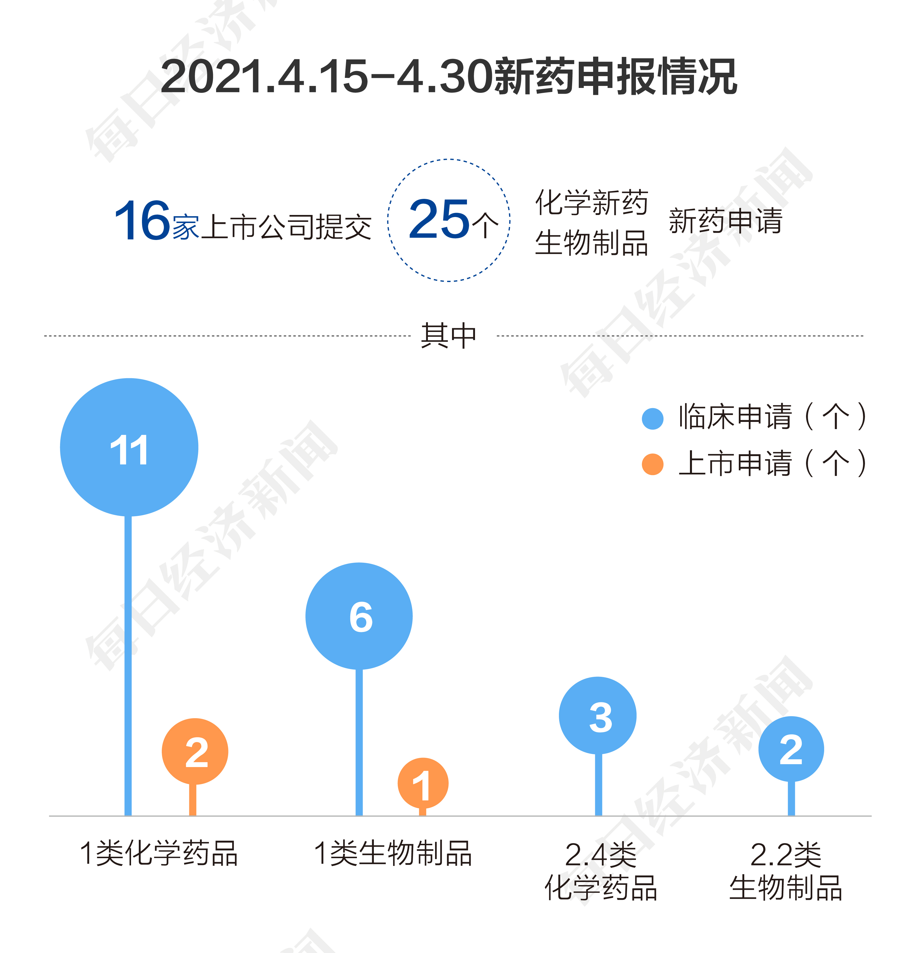 国家药品监督治理局药品审评中间共收到16家上市公司提交的25个化学新药、生物制品新药申请。此中。