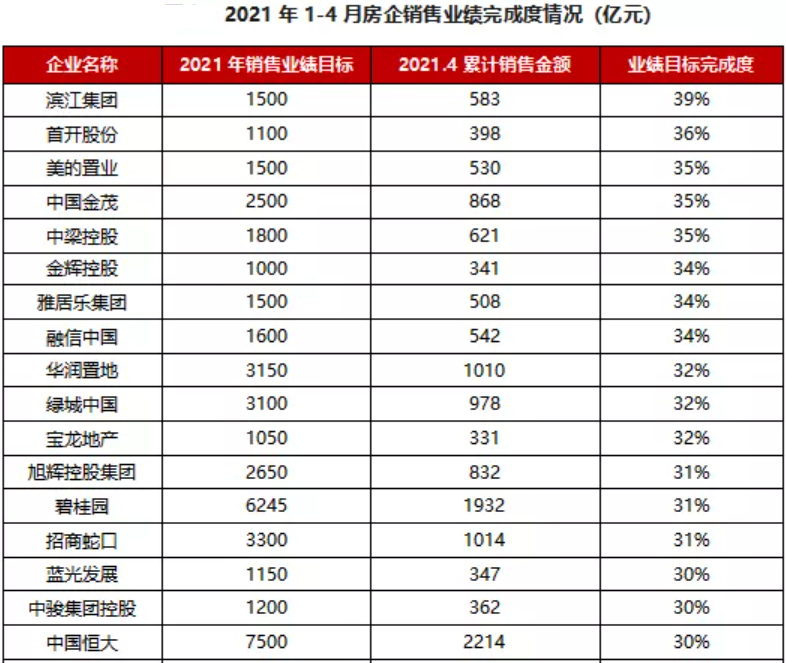 但早年4个月房企的贩卖业绩完成度来看。