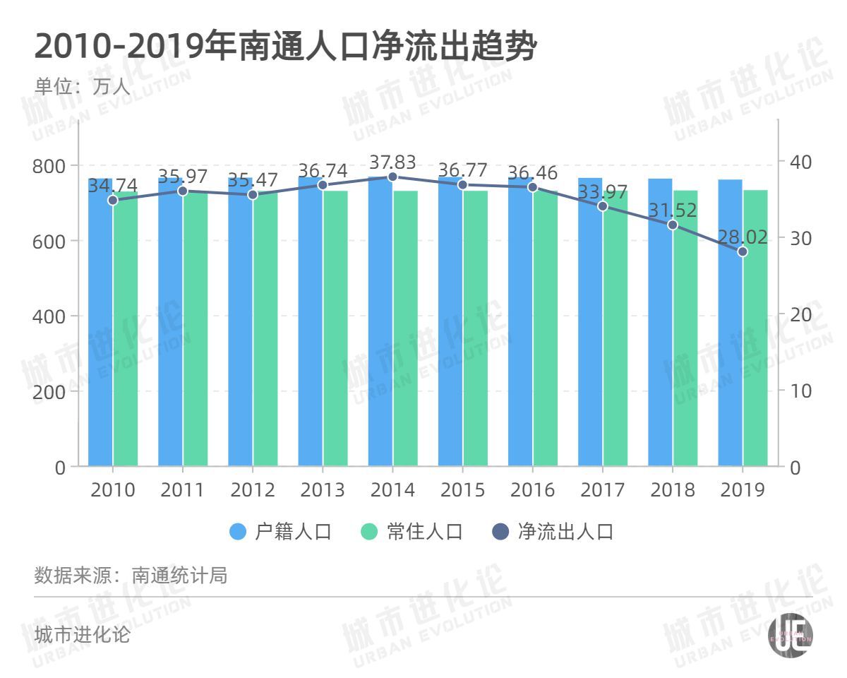 南通每年净流出人口险些都在30万人以上