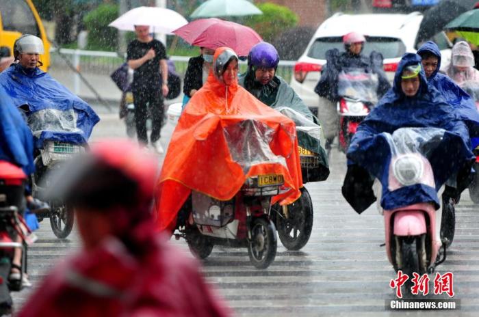 资料图:市夷易近在雨中出行张斌 摄