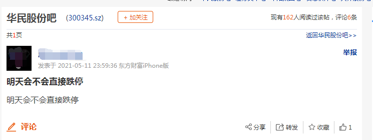 5月11日晚间持有该股的不淡定了。有投资者担心第二天股市开盘。