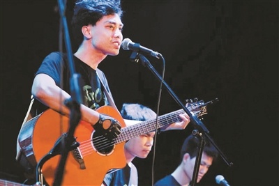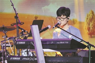 陈伟杰告诉记者,在进盲校之前,他第一次接触乐器是在读小学的时候,父亲给他买了电子琴、笛子、吉他。不会认谱子,就凭听觉认真分辨;找不到音准,就反复练习,形成肌肉记忆。而在进入盲校后,在音乐老师的指导下,陈伟杰第一次有了一个想法:或许可以把音乐当做自己的事业。