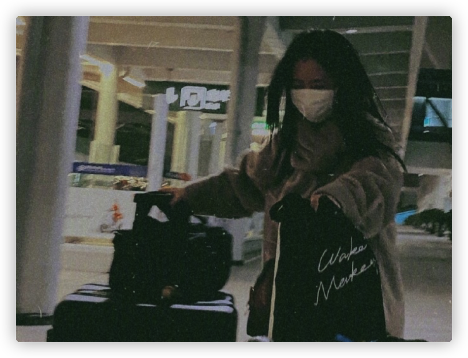 2月23日,谭松韵晒出一组胶片感生活照,并发文写道:“天黑了灯亮了嘿~”。照片中谭松韵身穿灰色大衣,两只手各推一个大行李箱,脸上戴着口罩,露出露出圆溜溜大眼睛,眉眼清秀,秀发自然散落肩旁,气质清冷,文艺范儿满分。