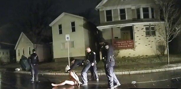 警方执法记录仪画面显示,多名警察在现场,其中多数看起来是白人。他们在空旷的街道上发现全身赤裸的普鲁德,随后给他戴上防吐头罩,以防飞沫传播新冠病毒。