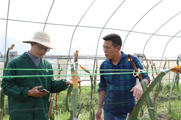 程小林指导火龙果种植 通讯员 董裕林 摄