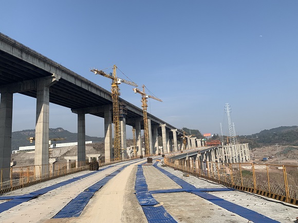 万州环线高速鹿山互通A匝道三号桥施工现场。通讯员 王凯 摄