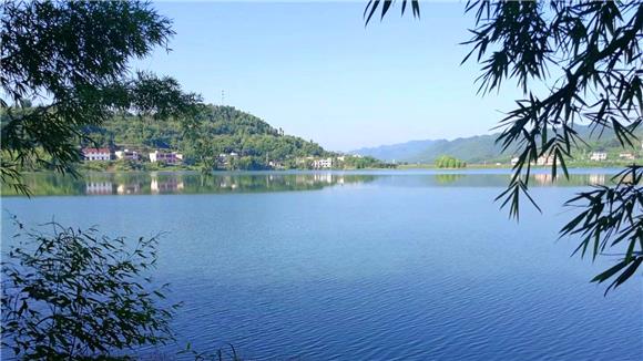 沿着新修的水泥公路来到山顶,碧波荡漾的桥亭湖、苍翠如黛的青山、美丽如画的田园和白墙灰瓦的农舍尽收眼底,让人心旷神怡。