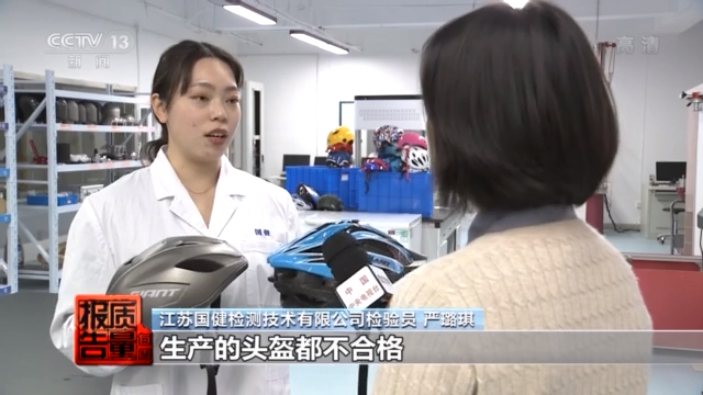 江苏国健检测技术有限公司工程师 苏鹤群:一些头盔生产企业,其实是运动器材产品的生产企业,或者是其他类塑料制品的生产企业。他们为了节约生产成本,在加工工艺上有所欠缺。另外他们利用消费者很难从外观上辨别这个产品质量的好坏,那么将产品质量不过关的产品在网络渠道进行销售,导致网络渠道的产品的不合格率一直居高不下。