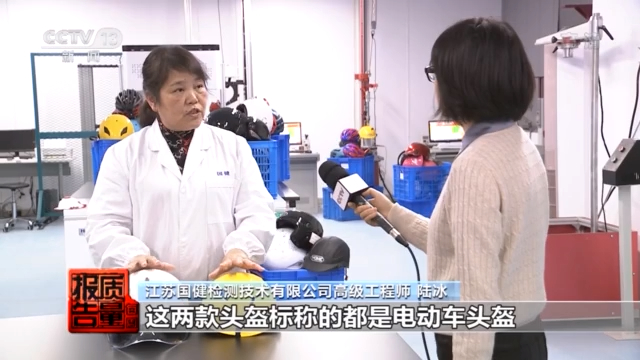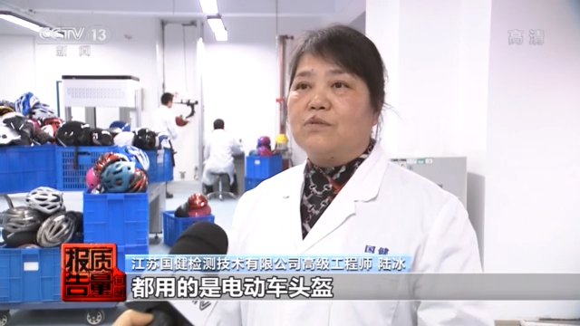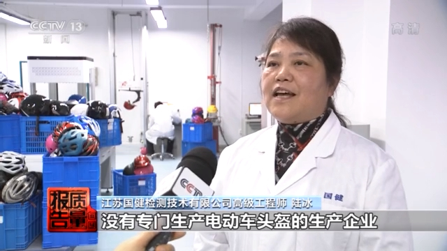 江苏国健检测技术有限公司高级工程师 陆冰:比如说外卖、快递小哥,他们都用的是电动车头盔。我们的上班族,二三线城市的这些上班族的人员都是用电动车头盔。目前这个生产企业又没有可执行的标准,电动车头盔的质量良莠不齐,很难保证这些企业生产的电动车头盔的安全性能。