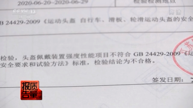 江苏国健检测技术有限公司工程师 苏鹤群:本次运动头盔抽查的不合格结果,我们均以书面的形式分别发往了生产企业、电商平台和销售店铺。
