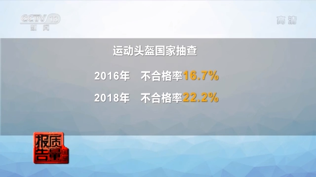 除了江苏省市场监管局以外,记者发现,国家抽查也多次对运动头盔进行抽检。2016年运动头盔国家抽查的不合格率为16.7%;2018年运动头盔国家抽查的不合格率为22.2%。