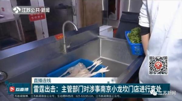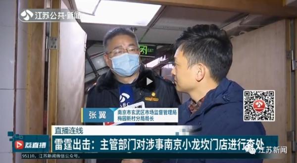 直播中,记者跟随南京主管部门一起,对当地涉事门店进行检查。