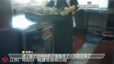 “正常的洗碗流程是一刮二洗三清四消毒,那个阿姨当时在洗碗的时候,直接用洗涤剂把碗洗过以后,进了那个洗碗的机子里面冲了一下就过来了,消毒机正常碗筷消毒要半个小时,她走了一圈大概在30秒就好了。”