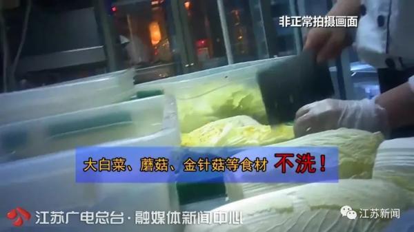 知情人告诉记者,他通过询问配菜员得知,香菇、娃娃菜、金针菇等菜,如果清洗的话不容易保存,而且洗后不好看,所以上桌前往往会在菜品上喷点水。