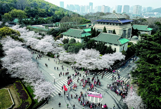 樱为礼。中国科学院院士、武汉大学校长窦贤康说,珞珈无所有,聊赠一枝春。
