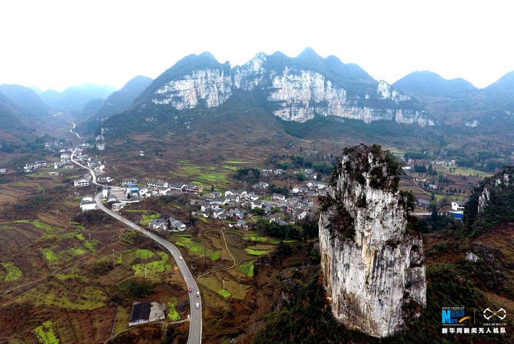 航拍贵州纳雍县化作乡枪杆岩村的通村公路。新华网 周远钢 摄