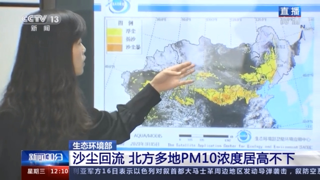 生态环境部卫星环境应用中心大气部污染源室主任 张丽娟: 18日,我国东部将迎大范围降水,本次浮尘基本可以沉降结束。但19日到21日,受较强冷空气影响,内蒙古中西部、宁夏等地有扬沙、浮尘天气,有可能在冷空气作用下,影响到中东部地区的空气质量。