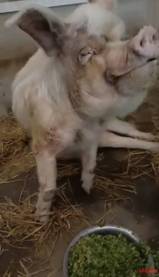 龚国成说,目前猪坚强饮食方面仍然很好,每天喂食的猪草、玉米粉和水调和食物,能吃20斤。只不过因为年龄相当于人类一百岁左右,且地震时造成了它腿部残疾,加之去年冬天天气寒冷,腿脚站立不起,走不动,就出现了它一直躺在稻草上的情况。“我给它喂饭都是直接把饭盆端在他嘴边,但它会都吃完的。从这一点来看,它精神方面没有问题,就是老了而已。”