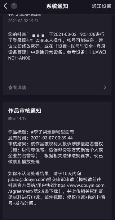 此后,王女士将发现烟头时拍摄的短视频命名为“李子柒螺蛳粉里面有”,并上传至个人抖音账号,3·15前夕,该作品因“被权利人投诉涉嫌侵犯名誉权”而禁止播放。