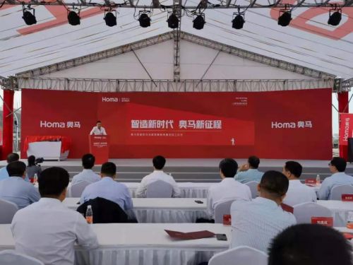 开工仪式现场彩旗飘飘,十多台挖土机一字排开,一派热火朝天的景象。空旷的土地上已堆积了钢筋、水泥等不少施工材料,周围住宅高楼林立,衬托出奥马新制造基地的新未来,为参加动工仪式的嘉宾勾画出宏伟蓝图。