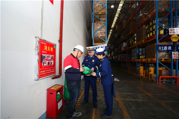 华龙网-新重庆客户端3月18日6时讯(通讯员 胡晓)为深入推进消防安全专项治理三年行动有效开展,切实加强物流仓储场所火灾防控工作,全面提升物流仓储场所的消防安全管理水平,3月17日,两江新区消防救援支队联合金山街道对辖区招商局物流集团重庆公司、保时通物流园等物流仓储场所开展消防安全检查。