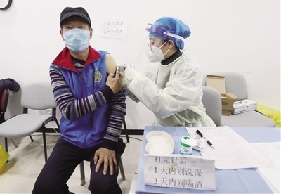二人住在外交部街社区。“我们一直惦记着打疫苗,前不久社区宣传说60岁以上也可以打了,社区很多年纪大的居民都已经接种了。我上午征得医院专家同意后,下午就来打了。”胡秀兰说。