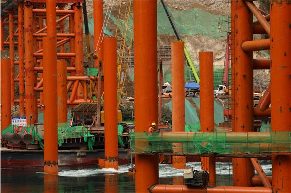 渝湘复线高速公路磨寨乌江大桥建设现场。特约通讯员 赵勇摄