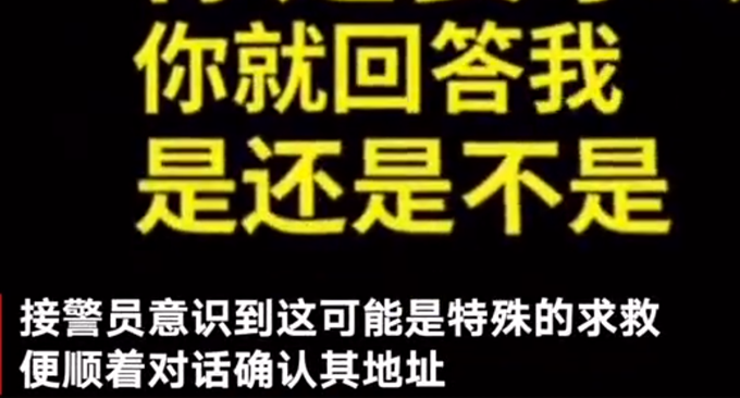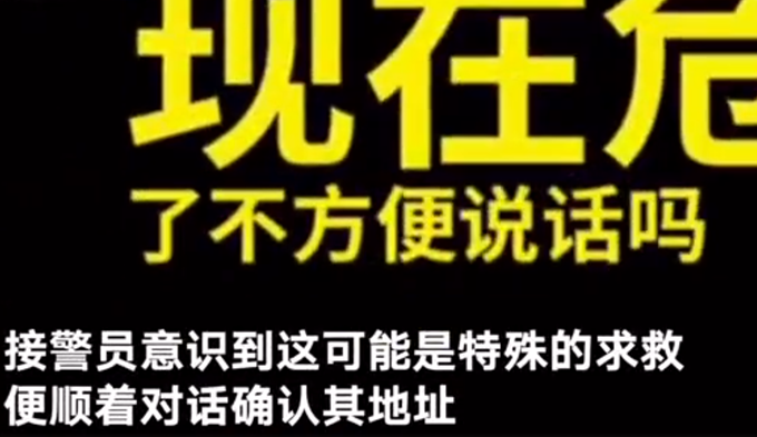 接警员提示:遇到类似不方便透露太多信息的情况可适当使用一些“暗语”——即让接警员能够听懂的一些暗示性信息,比如女孩在听到“这里是110接警中心”后的反馈:“我知道”、“我知道”、“你们给我送点东西”、“我主要是出不去”……