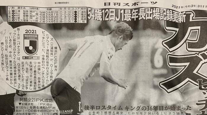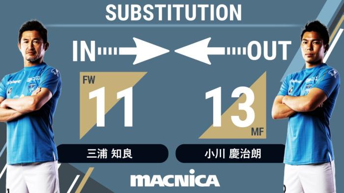 到了这一次纪录刷新之战,三浦知良也只是在下半场第48分钟(全场第93分钟)才得以亮相,出场时间不到两分钟。