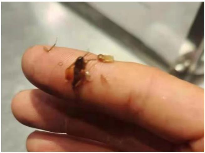 “快喝完时,突然发现嘴里嚼的东西口感不对吐出来一看,竟然是只黑色的虫子!”陈先生恶心坏了,当场呕吐不止……