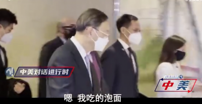 中美高层战略对话第二场会议开始前,王毅部长询问:“午饭吃了?” 杨洁篪主任:“我吃的泡面。”