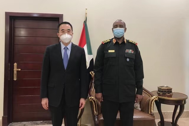 当地时间18日,中国驻苏丹大使马新民会见苏丹主权委员会主席布尔汉,向其通报中国援助苏丹的疫苗将于近日抵达。