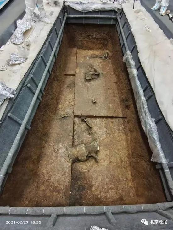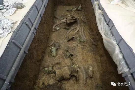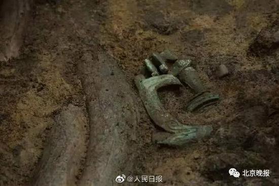 (三号坑器物露头时的图片,四川省文物考古研究院供图)
