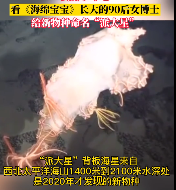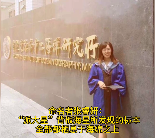 对于为何以派大星来命名,90后的张睿妍解释说,其实这个海星长得一点儿都不像动画里的派大星。但之所以以“派大星”为名,是因为它特殊的生活习性——与深海海绵生活在一起。“派大星”背板海星目前所发现的所有标本全部都栖息于海绵之上,就像海绵宝宝与派大星一样,是一对难舍难分的“铁哥们”。