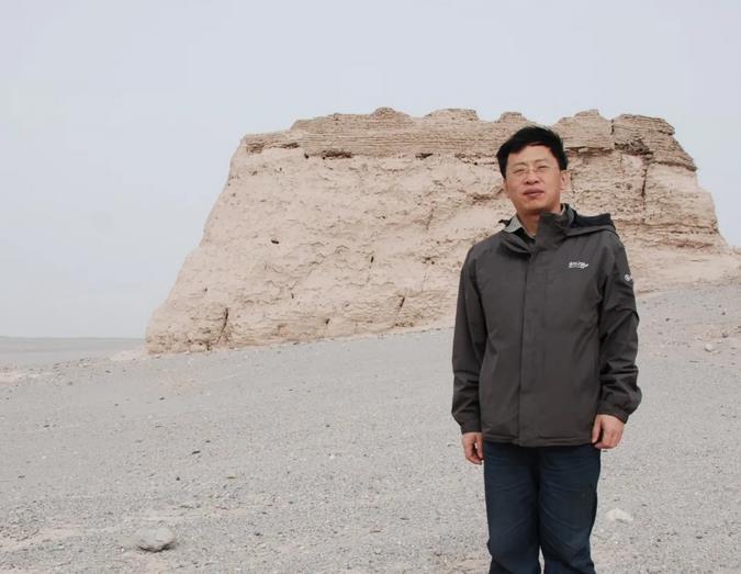作者刘文锁在新疆米兰吐蕃城堡遗址前留影