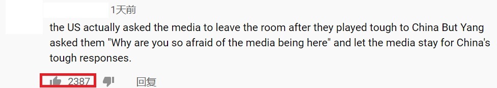 可能也是因为这个原因,一则含有中方发言内容的评论获得了最多的赞。