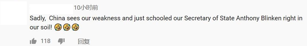 至于一贯支持共和党的Fox,这次中美对话也给了他们大量抨击拜登、布林肯等人的素材。但是,在评论中,仍然不鲜见美国人对中国在这次对话中出色表现的认可。不过,有些美国人显然是后知后觉了,在网络上表达出他们的震惊。