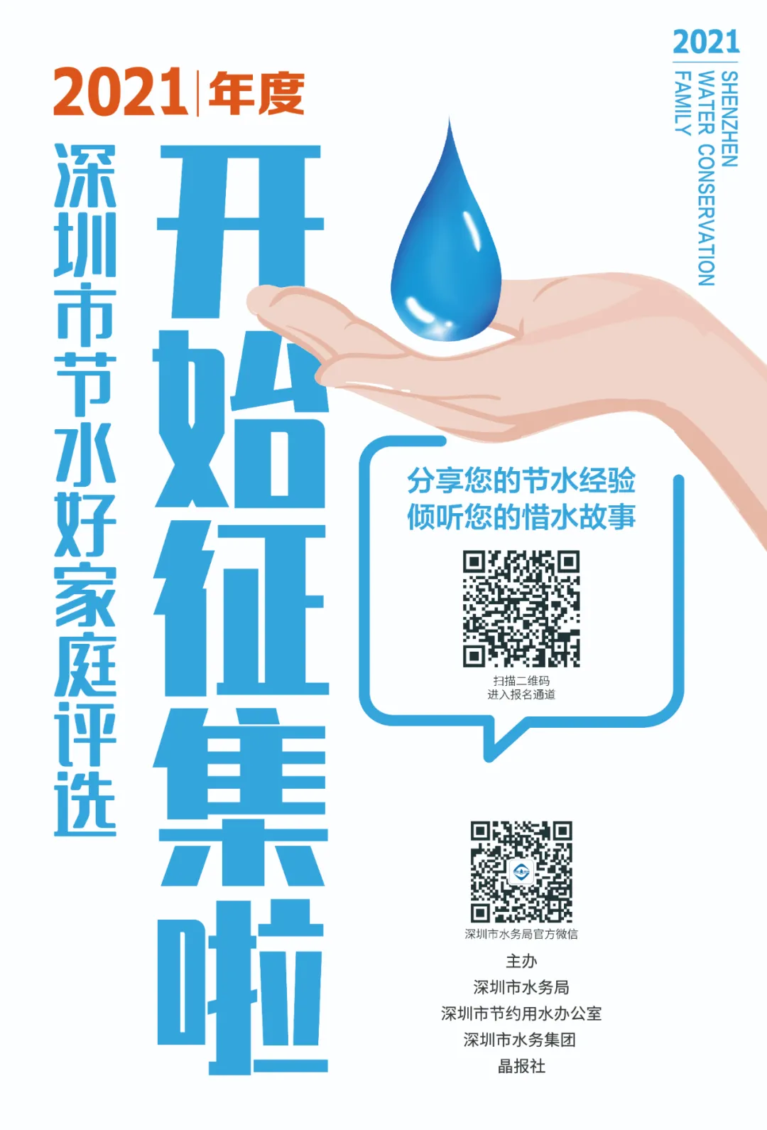 在这个特殊日子里,由市水务局、市节约用水办公室主办,深圳市水务集团和晶报社协办的2021年度深圳市节水好家庭评选活动要正式开启征集啦!