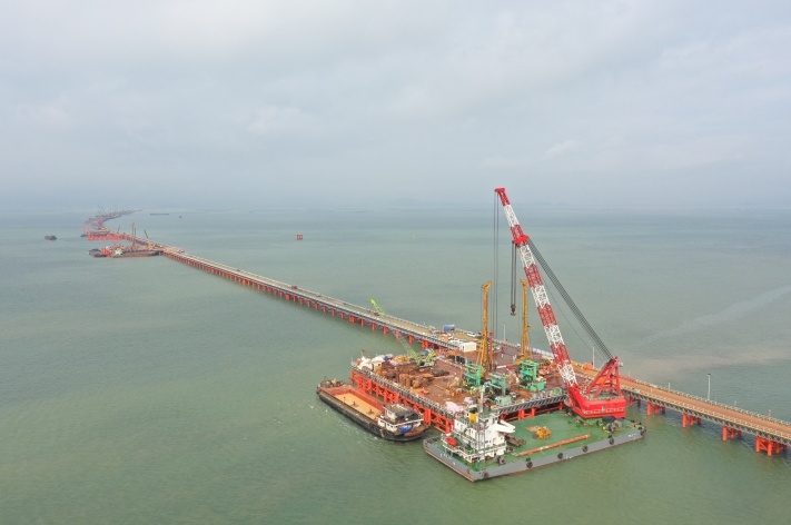 黄茅海跨海通道建设正如火如荼进行着。南方日报记者 石磊 通讯员 岳路建 摄