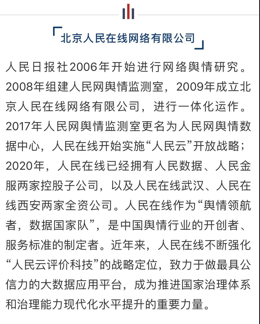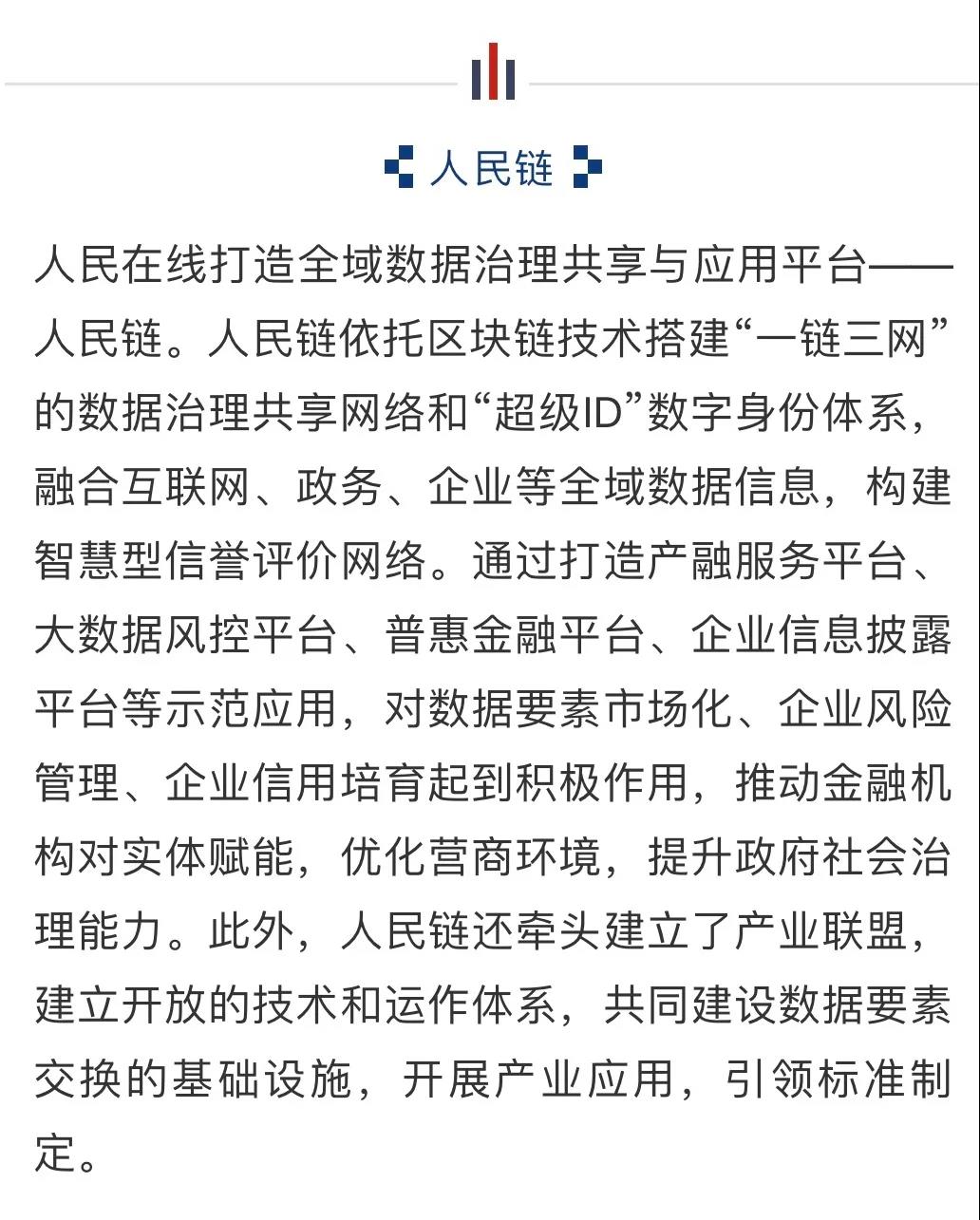 人民在线作为“舆情领航者,数据国家队”,致力于做最具公信力的大数据应用平台,成为推进国家治理体系和治理能力现代化水平提升的重要力量。“人民链”是人民在线打造全域数据治理共享与应用平台,依托区块链技术搭建“一链三网”的数据治理共享网络和“超级ID”数字身份体系,融合互联网、政务、企业等全域数据信息,构建智慧型信誉评价网络。