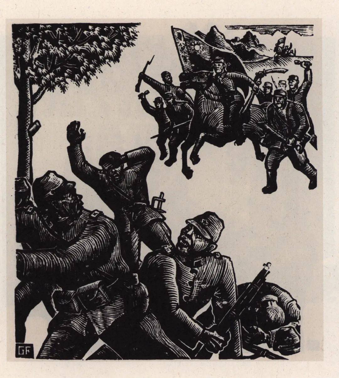 江丰创作出木刻版画《平型关连续画》