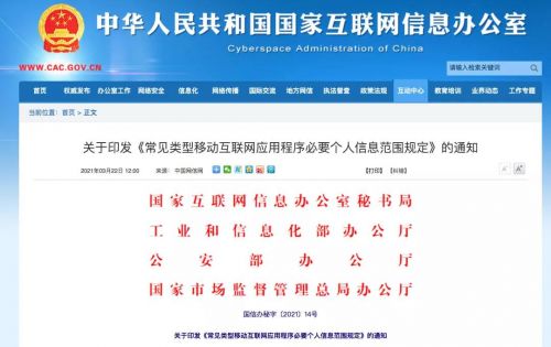 不给权限不让用?App超范围收集个人信息遭诟病已久。近日,中央网信办、工信部、公安部、国家市场监管总局四部门联合发布《常见类型移动互联网应用程序必要个人信息范围规定》(以下简称《规定》),涉及网上购物、网络支付、即时通信等39种常见类型App,自今年5月1日起施行。