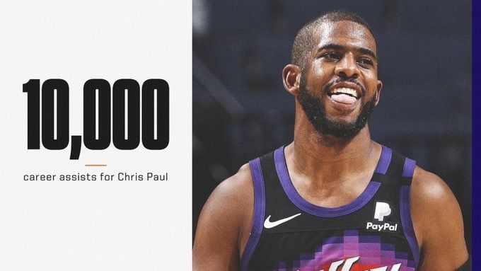 保罗职业生涯常规赛总助攻数达到10004次,正式突破一万大关,成为NBA历史上第6位达成该成就的球员。