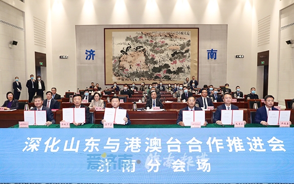 刘家义在作主旨演讲时说,当前,山东按照习近平总书记重要指示要求,深入贯彻新发展理念,主动融入和服务构建新发展格局,区位优势、资源优势、开放优势、创新优势更加凸显。40多年改革开放史,见证了山东人民与港澳台同胞携手发展、共同“打拼”的历程。这次合作推进会,是山东开启新征程的第一个重大经贸活动,也是历史上首次同港澳台联合举办项目推介活动。我们正全力打造市场化、法治化、国际化营商环境,为所有港澳台企业和各类人才提供全周期绿色服务,让投资者在山东更安心、更舒心、更放心。让我们携手拓展产业合作新空间,携手打造科技发展新引擎,携手开创经贸合作新境界,携手分享内需扩容新红利,携手搭建人文交流新平台,共享发展机遇,共创美好未来。