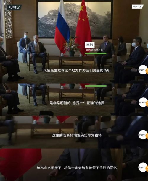 “RT今日俄罗斯”下属的国际新闻视频通讯社Ruptly3月22日发布的一段视频中,王毅在会晤时称赞:俄罗斯驻华大使选择桂林作为会晤的地点,“是非常明智的、正确的选择”。